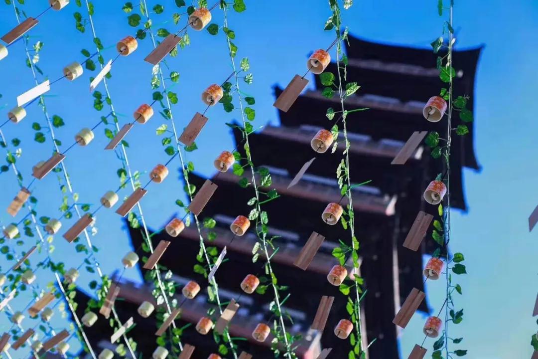 塔前風(fēng)鈴隨風(fēng)而動(dòng)